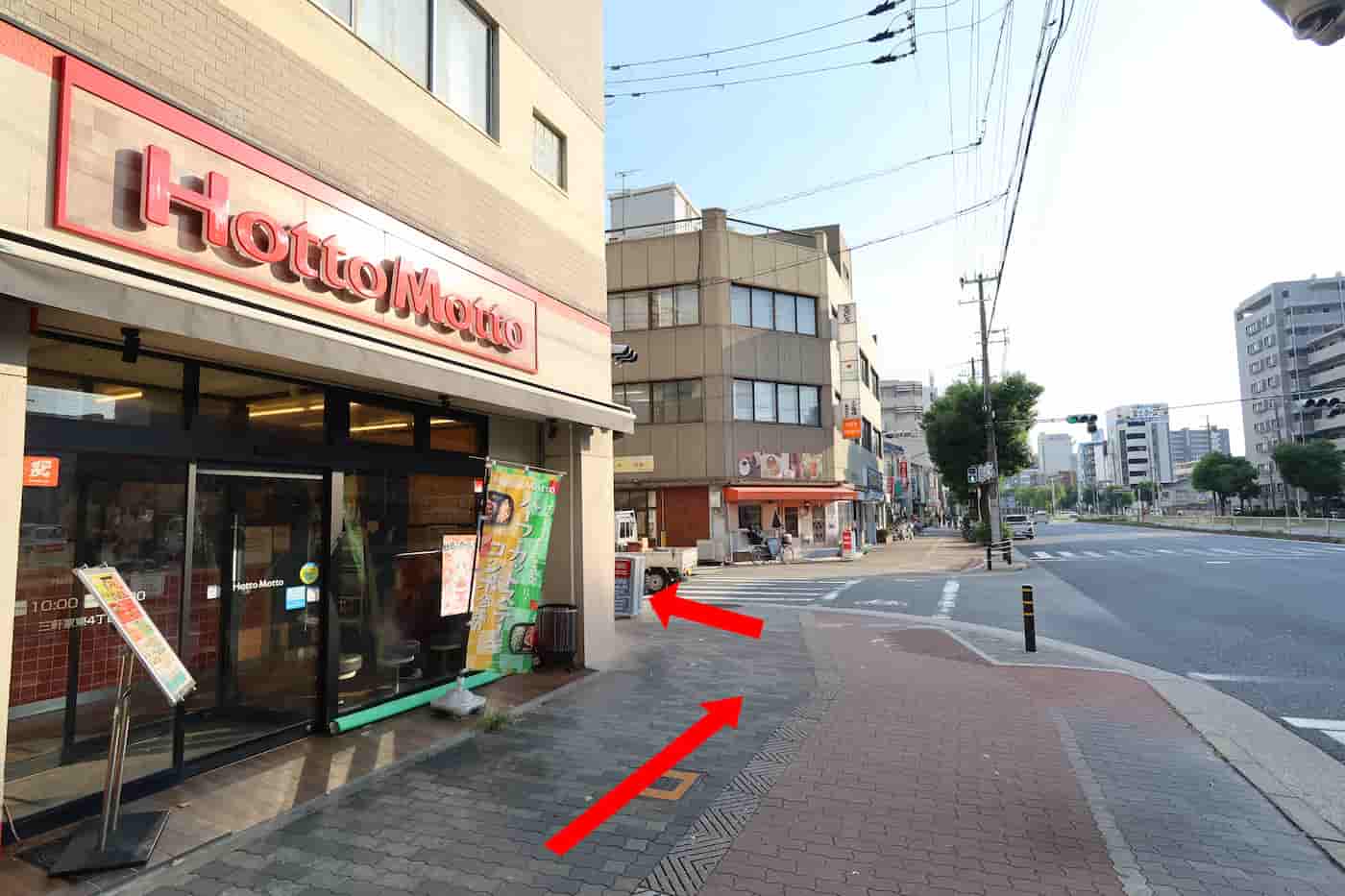 左側に見える「ほっともっと」の角を左に曲がる