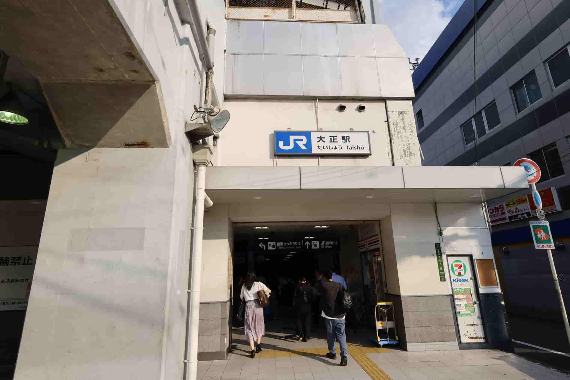 JR大正駅前に、南北に道路に沿ってバス停があります。